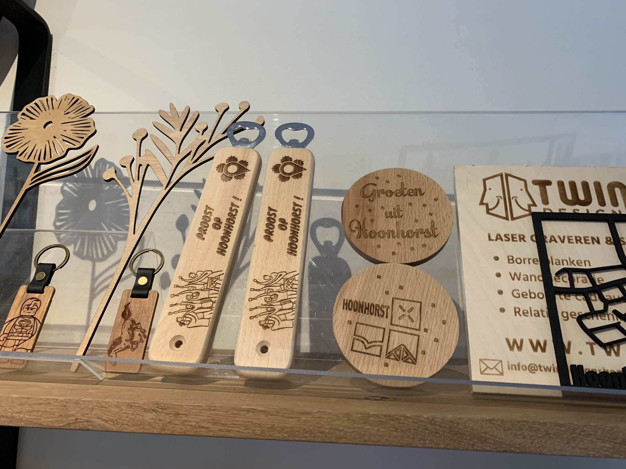 Anjerpunt Hoonhorst is trots op de vele houten producten van Twin Design uit Hoonhorst. Van sleutelhanger tot bloemen of een snijplank, je kan het zo gek niet bedenken. Het assortiment verandert regelmatig.