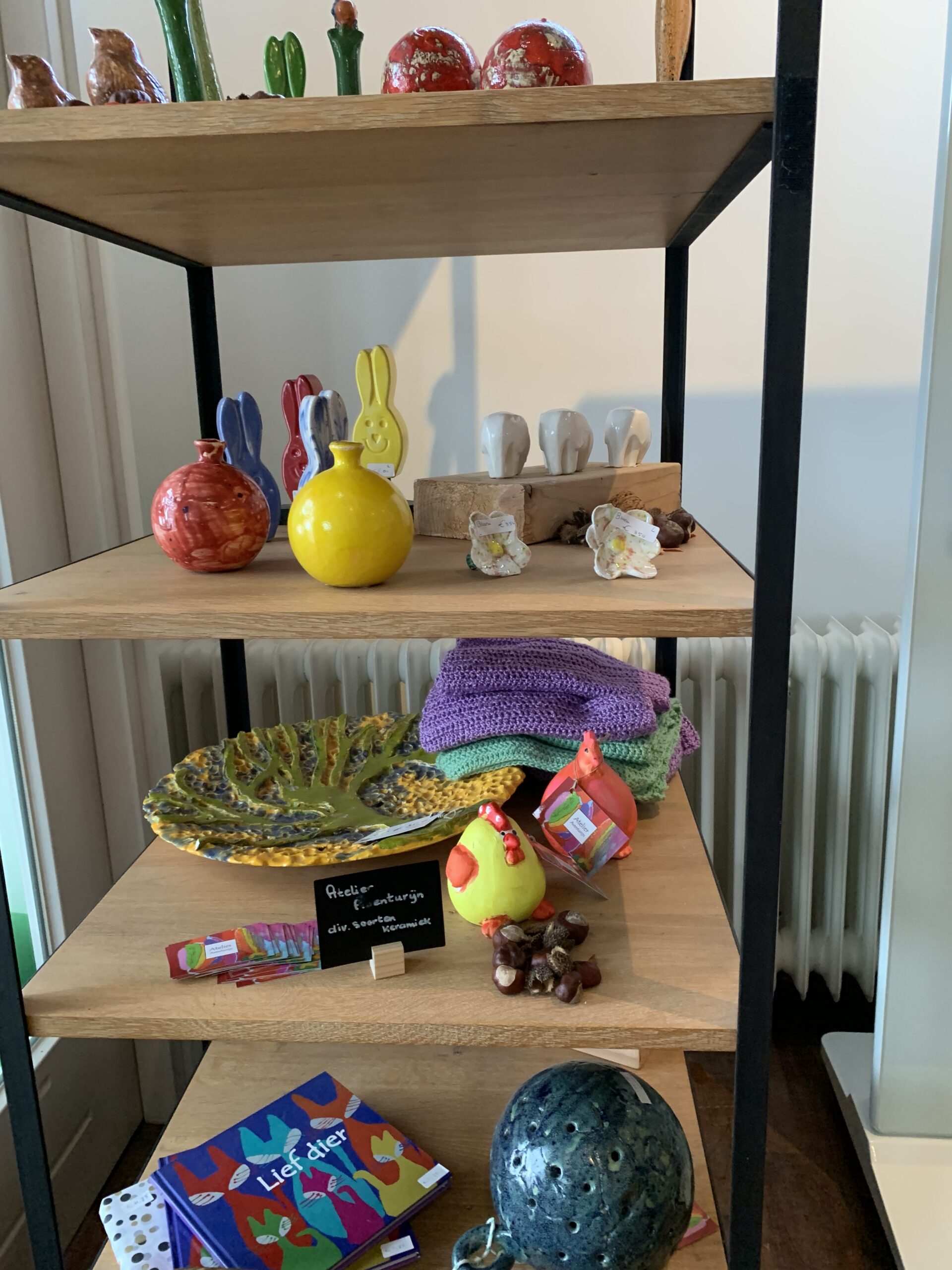 Diverse producten om het huis mee op te vrolijken. Het keramiek kan ook heel goed buiten worden geplaatst. Op de foto is slechts een kleine selectie. Het assortiment wisselt steeds. Van olifantjes, vlinders, bloemen en vaasjes en veel andere artikelen. Ze worden met de hand gemaakt door Luuk van der Maaten uit Dalfsen.