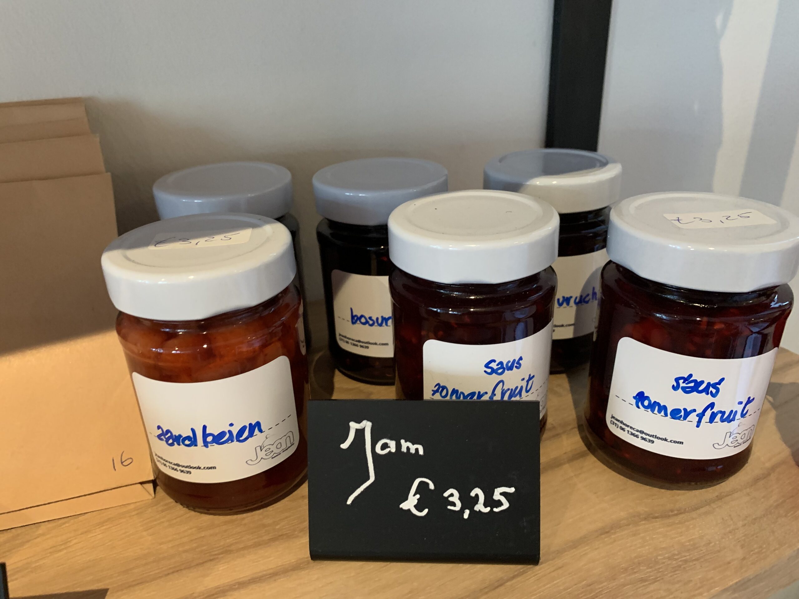 De heerlijke jam wordt gemaakt door Jean Huitink uit Hoonhorst. Verkrijgbaar in wisselende smaken.