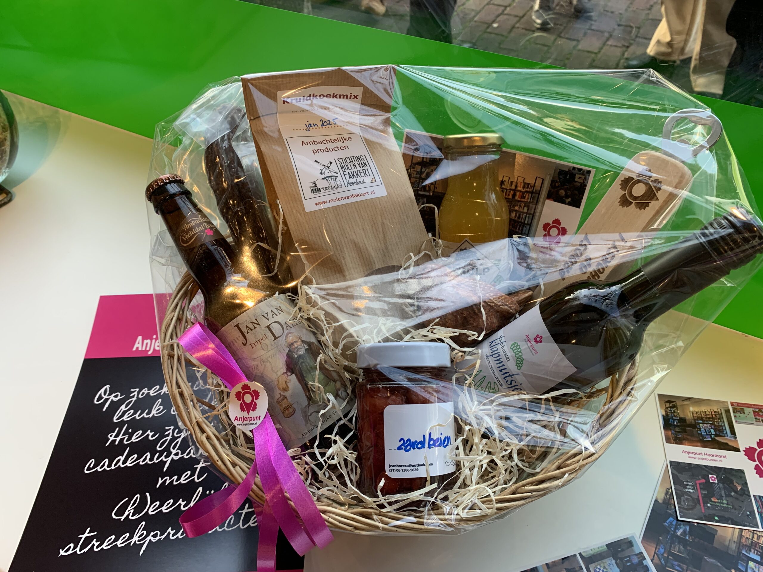 De Noabers van Anjerpunt Hoonhorst stellen verschillende cadeaumandjes samen. U kunt ook zelf artikelen bij elkaar zoeken die dan als cadeau verpakt worden. In de Pantry liggen een aantal cadeaumanden als voorbeeld.