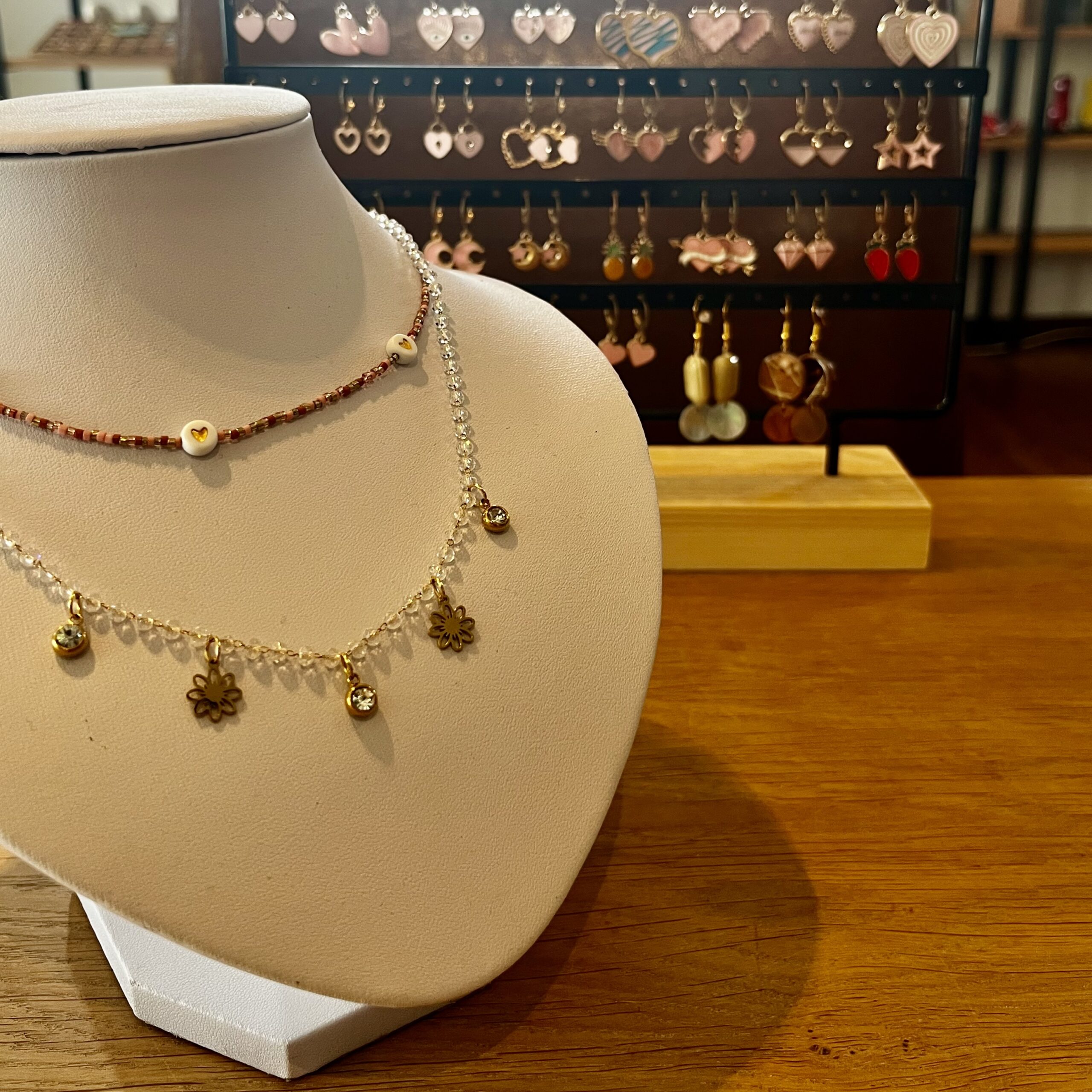 Deze sieraden worden gemaakt door de jongste ondernemer van Hoonhorst: Veerle Bekendam. Zij exposeerde bij Anjerpunt Hoonhorst tijdens Kunst om Dalfsen. Vanwege het grote enthousiasme heeft Anjerpunt Hoonhorst de oorbellen, armbandjes, kettingen en bril-kettingen in het assortiment gehouden. Gun uzelf of een ander een mooi cadeau.