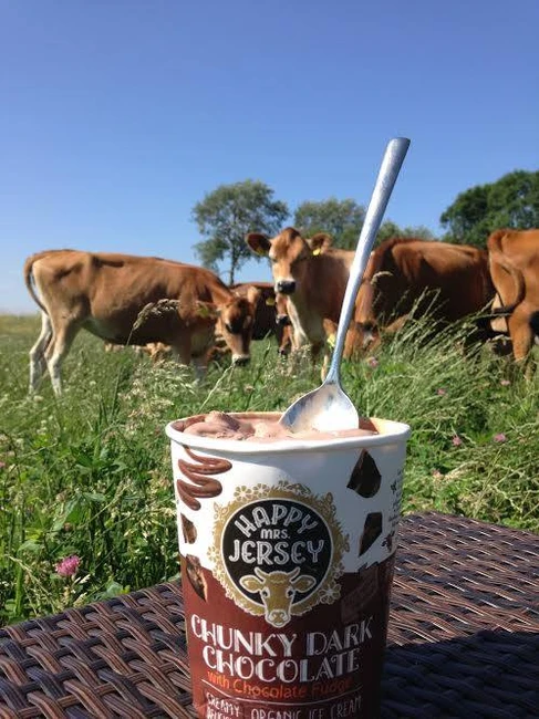 Het ijs heet niet voor niks Happy Mrs. Jersey, want je proeft het! Bij Anjerpunt Hoonhorst verkopen wij de kleine bekers met 190 ml ijs van A2 zuivel.
