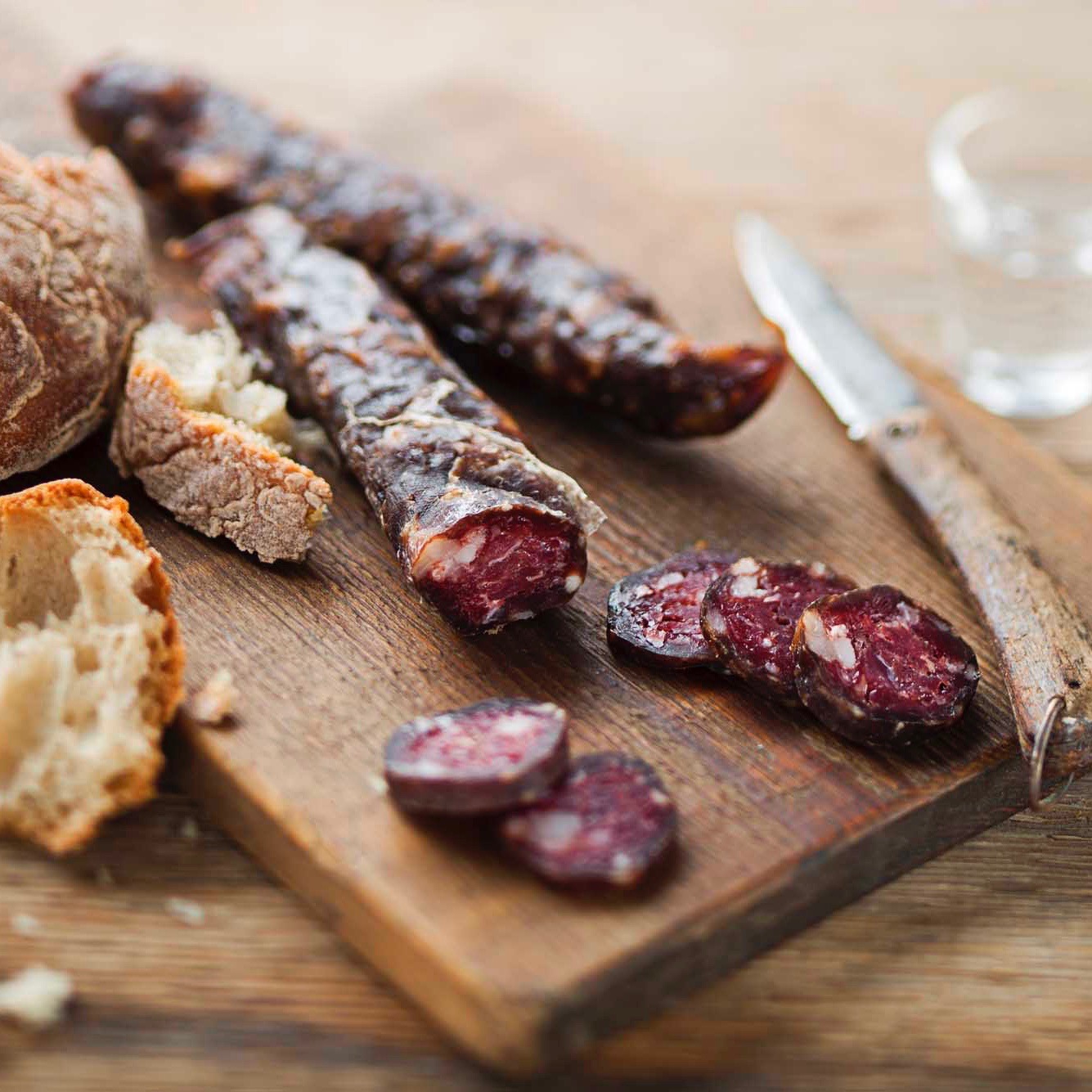 De droge worst is van Veehouderij Arjan Schrijver aan de Heinoseweg. Arjan heeft zijn Black Angus koeien zoveel mogelijk buiten lopen. De worst is verkrijgbaar in diverse smaken. Ziet u de droge worst niet in onze streekproducten kast, dan ligt het vast in de koeling.